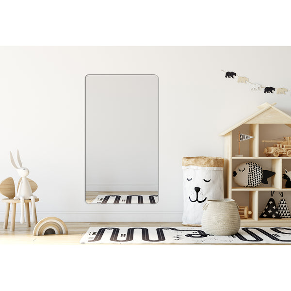 - Safe rounded corners and rounded edges for extra style and safety. Lighter, stronger, and safer than regular glass mirrors.